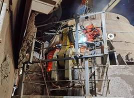 由賽迪股份總包、賽迪裝備承制的寶鋼集團新疆八一鋼鐵有限公司“150噸轉爐懸掛改型工程”項目,需要在項目現場進行焊接,承接現場焊接的協力公司能力有限,轉爐安裝焊接工作進度滯后了半個月。為保工期,在集團與公司各級領導的指導與協調下,公司制造中心分別于12月16日、17日、20日,分三批緊急抽調了14名(含外包隊伍)車間工作經驗豐富的焊接師傅,由結構車間主任張勇帶隊趕赴現場支援。到現場后還沒來得及休整即召開緊急會議,并查看現場實地情況,發現整個爐體上段工作還未開展;下段4個爐殼吊掛座還未焊接,4個托圈吊掛座焊了2個、還有2個未開始,同時已焊接的2個托圈吊掛座全部探傷不合格、需要刨開返修,工作量較大,加上全國大范圍寒潮來襲,新疆氣溫更是低至零下15度,低溫環境中需要進行焊條焊絲保溫、焊縫預熱等很多準備工作。會后大家就立刻投入到24小時的輪番作業中。