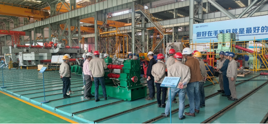 2023年3月14日,臺灣燁興線棒復合線改造項目業主就中冶賽迪裝備設備成套的NHCD系列高剛度短應力線軋機、FHSCD系列飛剪、夾送輥、SRSCD系列高速線材減定徑機組等核心設備進行A檢。通過過程材料檢查、數據測量、模擬試車等一系列環節,各項指標均符合設計要求,A檢順利通過。其中精軋區核心裝備之一的減徑機測試速度達117m/s,最大振動值2.6mm/s,達到國際先進水平。