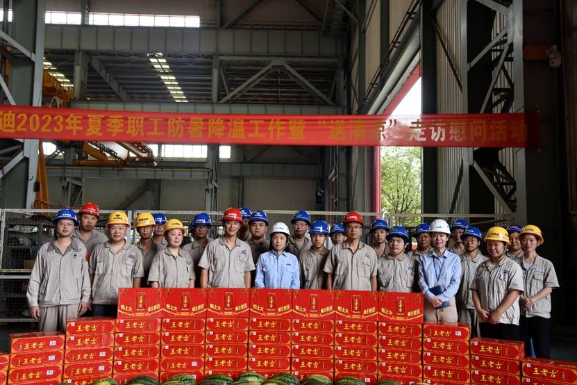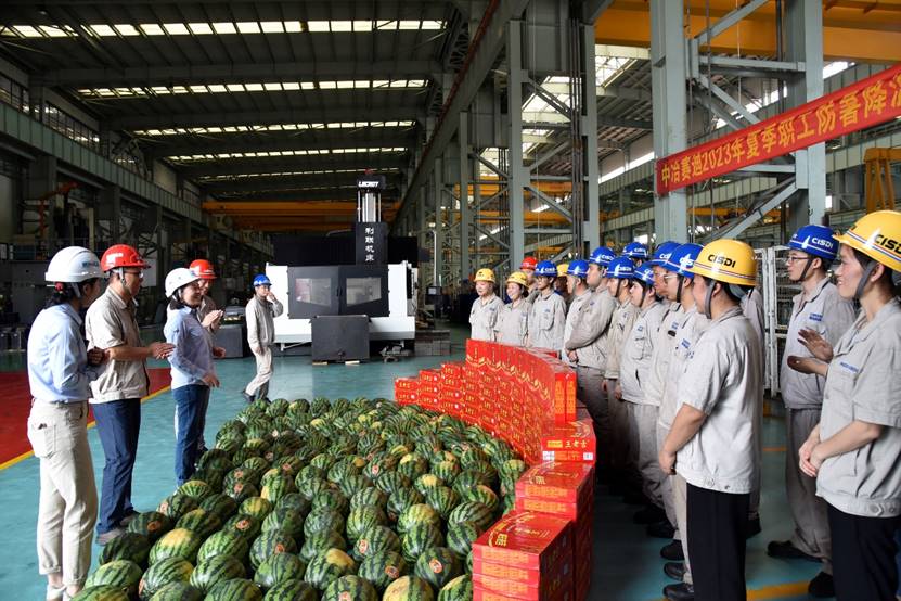 隨著7月11日三伏大幕正式開啟,重慶地區也進入了一年中氣溫最高,且又潮濕、悶熱的時段。為表達集團對廣大職工的關心與愛護,7月13日上午,集團工會主席范淑華帶隊,到中冶賽迪裝備開展高溫慰問工作,并為奮戰在生產一線的員工送來清涼飲料和西瓜。