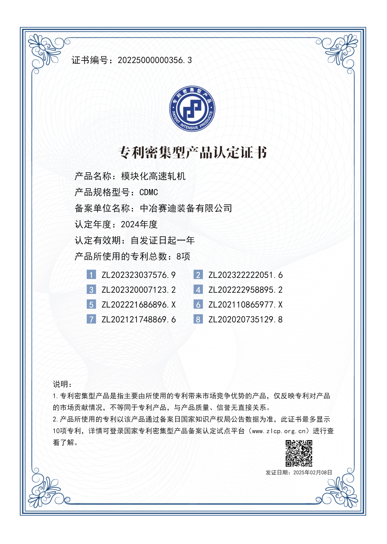 近日,國家知識產權局公布了2024年度專利密集型產品認定結果,中冶賽迪裝備申報的短應力線軋機、模塊化高速軋機兩項核心產品,依托知識產權價值,憑借突出的技術創新能力成功通過認定。