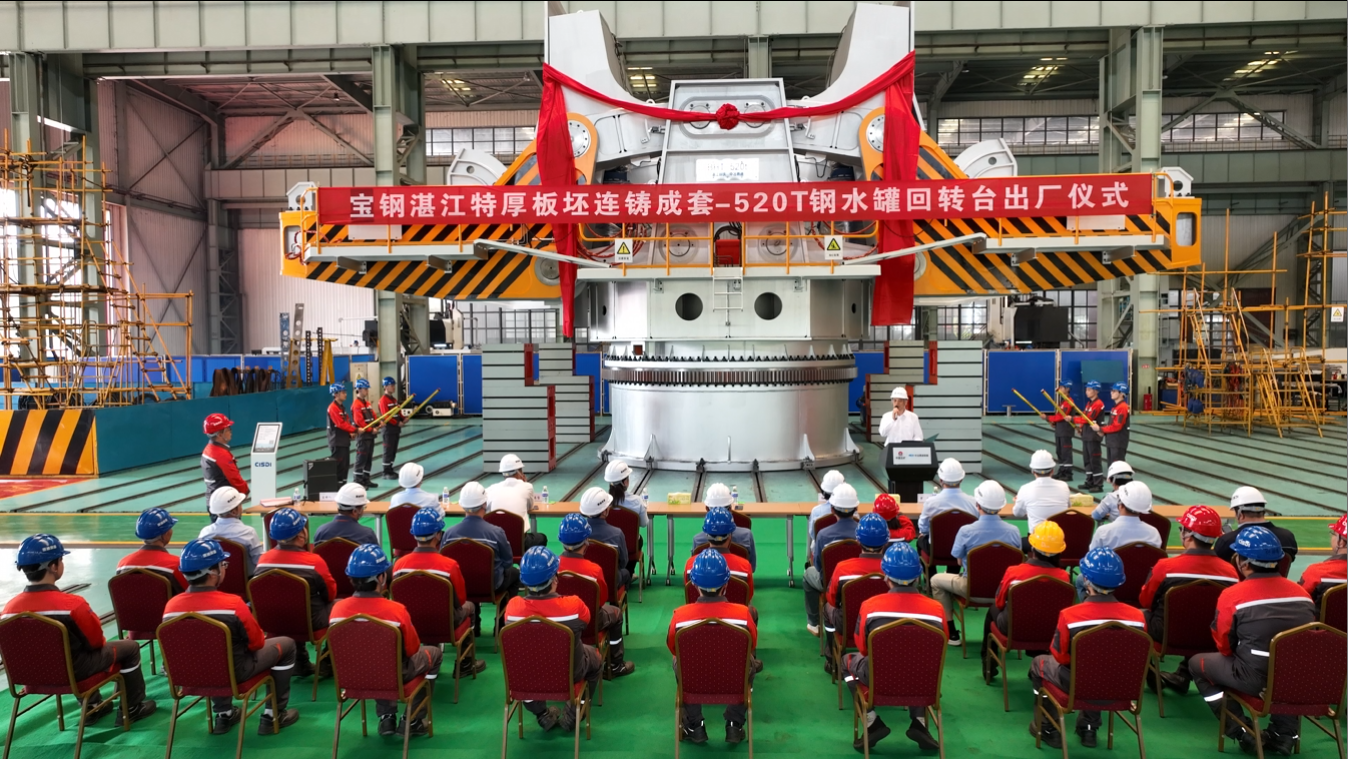 2025年5月14日,由中冶賽迪負責設計制造的寶鋼湛江鋼鐵新增5號特厚板坯連鑄成套項目鋼水罐回轉臺順利通過A檢驗收,正式出廠。寶鋼湛江鋼鐵副總指揮王超及有關領導出席出廠儀式,中冶賽迪股份公司、中冶賽迪上海公司、中冶賽迪裝備公司有關負責人,參與本項目的技術、檢驗、制造人員參加出廠儀式。